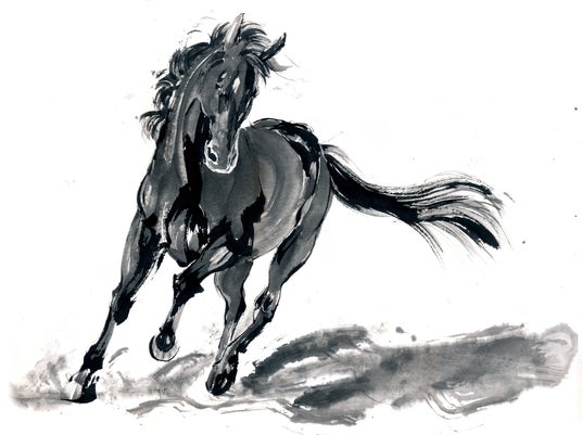 筋肉質な体と、優雅にたなびくたてがみや尾が、新しい年に向かう躍動感を感じさせます