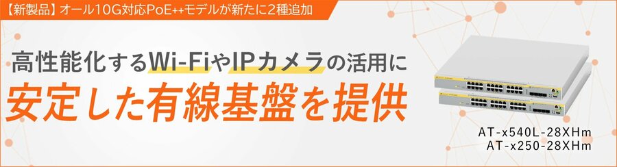そこで、10Gbps通信と高出力給電の両方に対応し、次世代ネットワークの有線基盤を最適化するエッジスイッチとして、AT-x540L-28XHmおよびAT-x250-28XHmの提供を開始します。