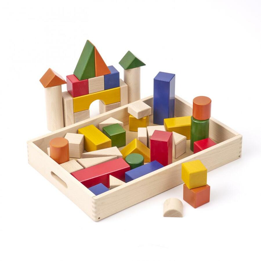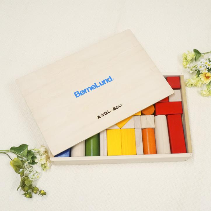 広い接地面と適度な重さで子どもにも積みやすく、成長と共にあそび方は自由に変化。あそびの基本が詰まっています。