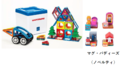 数学センスを育む磁石ブロック。14種類の図形に車輪やカーブなど多彩なパーツが揃い、収納BOX付きの人気セットです。あそび方冊子には作例も満載!