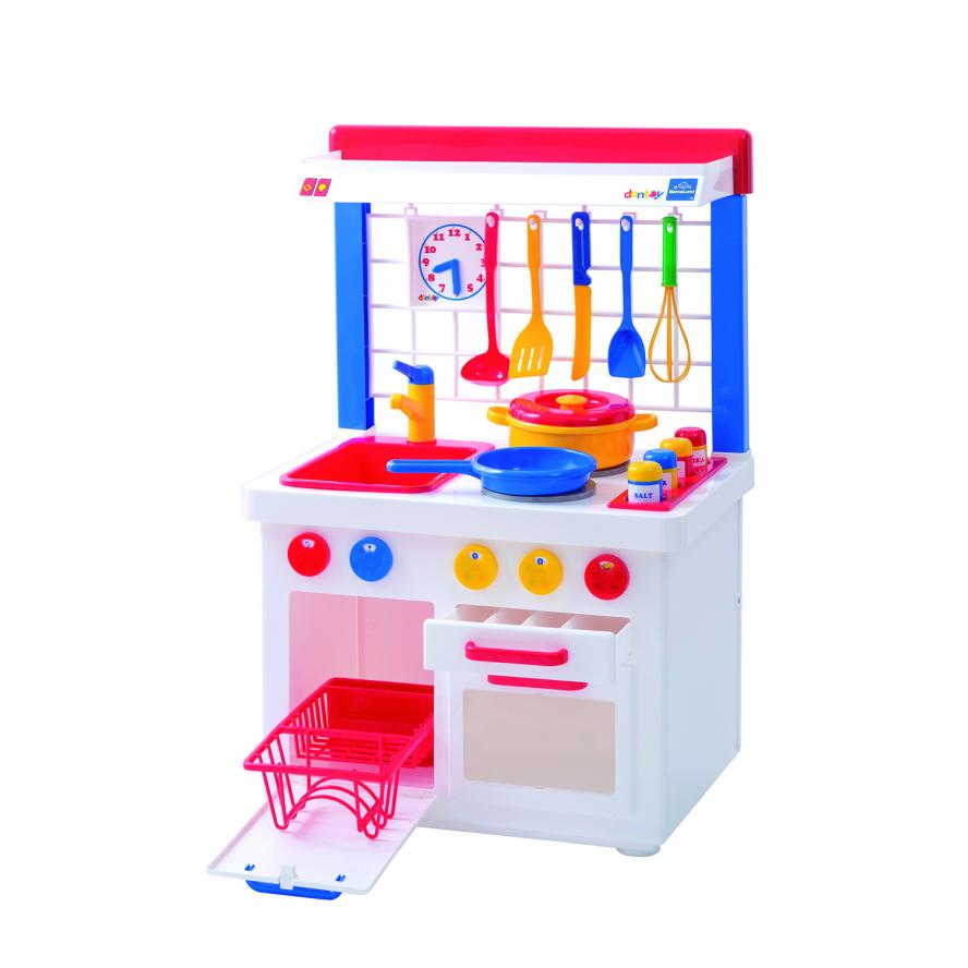 子どもの等身大サイズで、お料理道具も付属。カチカチ回せるコンロや、実際に水を入れられるシンクなど、リアルな仕様が子どものわくわく感を刺激します。