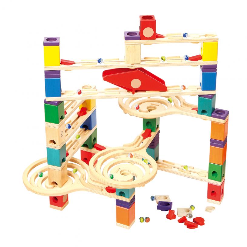 ブロックとレールでビー玉転がしのコースを組み立てるセット。ゴールまでの道筋を逆算して試行錯誤する時間に熱中。