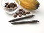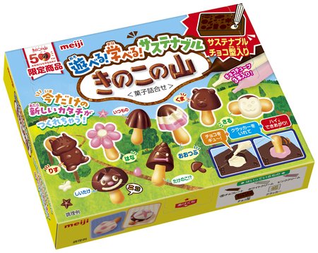 「カカオバイオプラスチック」は、当社と株式会社ヘミセルロースが共同開発した、カカオの種皮を配合した樹脂素材です。環境負荷の面では石油由来プラスチックと比較して、CO2排出量を30~60%削減することが可能で※2、物性の面では硬さと柔軟性を両立している点を特長としており、幅広い分野への展開が期待されています。すでに当社品「遊べる!学べる!サステナブルきのこの山」のトレーの材料に採用しており、玩具(株式会社タカラトミー「プラレール」)や筆記具(ゼブラ株式会社「サラサクリップ」)など※3にも使用されています。