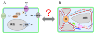 図2 A. Na⁺輸送体を介しての細胞内のイオンバランスの維持 B. 複数のミオシンXIによる細胞小器官や小胞の輸送