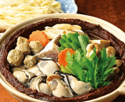 [かき180g×2、いわしつみれ100g×2、すずき切身×4(計160g)、土手鍋用みそ150g、うどん230g×2]