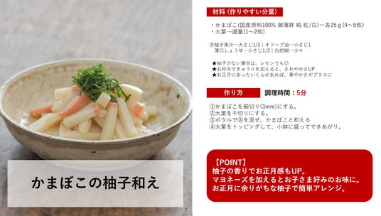 一正蒲鉾は、練り製品はもっと自由で楽しいということを多くの方にお伝えするため、練り製品の飾り切りで様々なキャラクターやモチーフを表現した「ねりデコ」を提案してきました。現在、公式HPでは298種類の「ねりデコ」のレシピ動画を公開しており、クリスマスやお正月のおせち料理はもちろん、毎日の食卓やお子様のお弁当などにも手軽に彩りをプラスし、楽しんでいただけます。