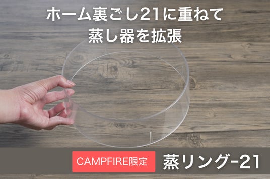 すでに『ホーム裏ごし21』をお持ちの方には『蒸リング-21』単品、まずは『ホーム裏ごし21』を試してみたい方向けには単品リターンもご用意。
