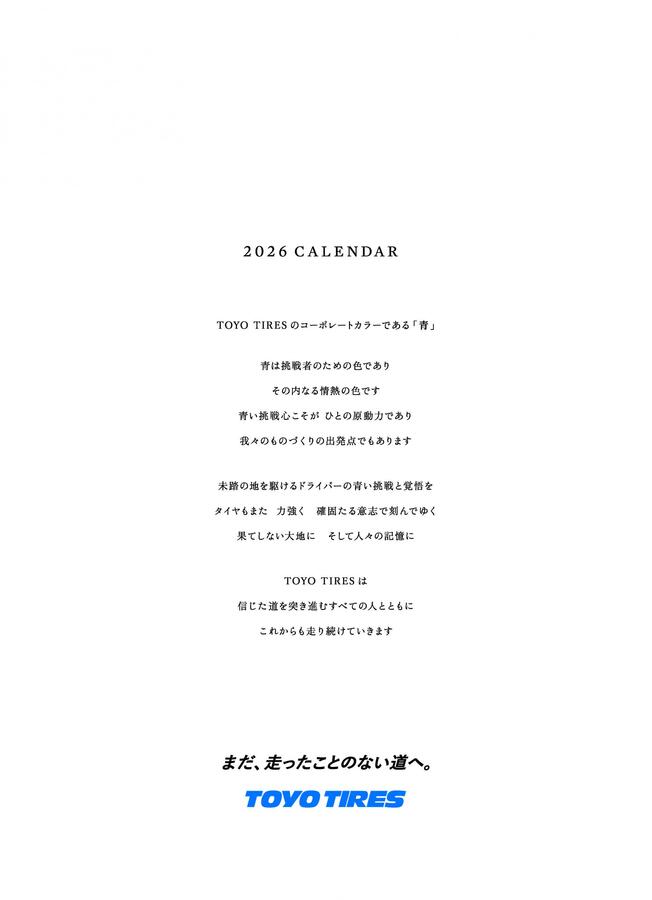 ■2026年版「TOYO TIRES カレンダー」 ビジュアルイメージ