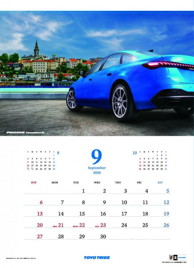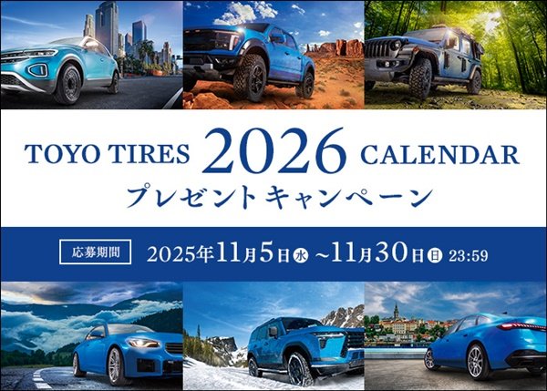 TOYO TIRE株式会社は、2026年版「TOYO TIRES カレンダー」を制作しました。ご応募いただいた方の中から抽選で同カレンダーをプレゼントするキャンペーンを、本日、11月5日(水)よりスタートしますので併せてお知らせいたします。