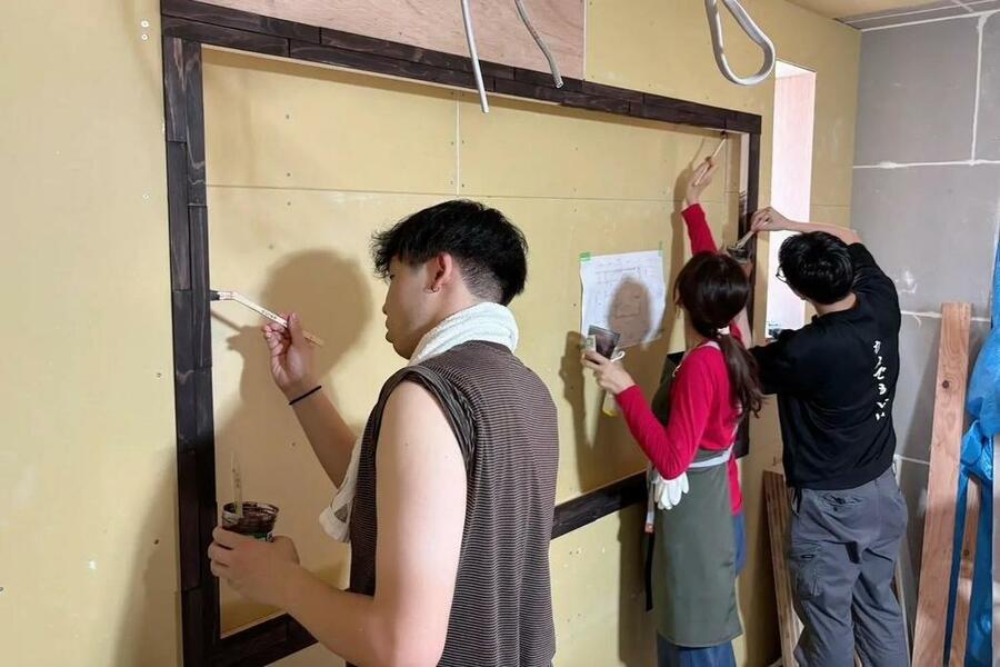 作成した図案は、設計事務所が監修。また、学生らは解体、施工など改築現場にも立ち合い、内装を手伝う貴重な経験も得ることができた。
