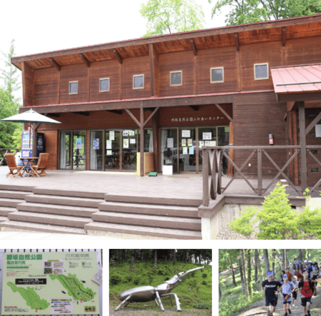 穂坂自然公園は、約1700平米メートルと広大な森林を整備してつくった公園で、園内には大きいクワガタのオブジェがお出迎えしてくれます。