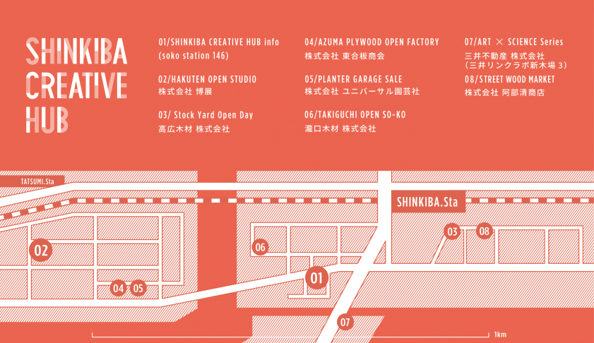新木場駅エリアに、SHINKIBA CREATIVE HUBのイベントガイドブースを設置する予定です。