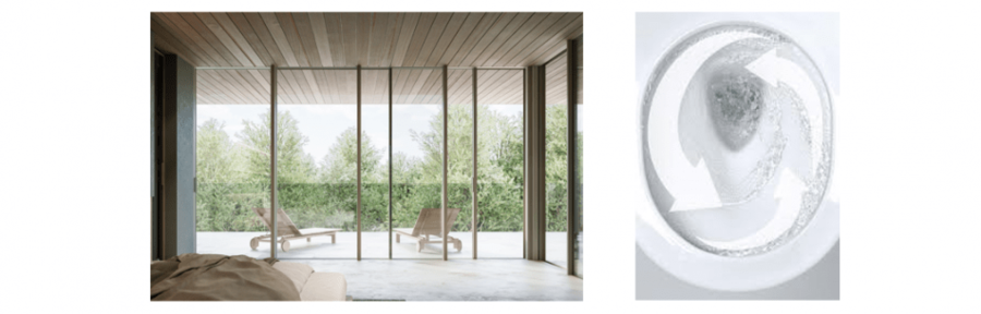 水資源の重要性が高まり、さらなる節水技術の向上が求められる中、LIXILは2016年にトリプル旋回流を利用した節水トイレの技術を開発しました。3つの吐水口のうち1つは便器鉢内の手前右方向から折り返して吐水させるという斬新な構造を採用することで、強力な旋回流を作り出し、わずか4Lの少水量でありながら、高い洗浄力と清掃性を両立させました。