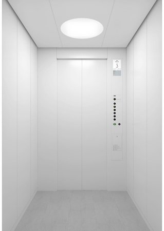 2021年に発売した「アーバンエース HF」は、統一感のある色調と、凹凸の少ないフラットな乗りかご内空間、高い視認性を確保したボタンなど、シンプルな中に機能美を追求したデザインが特徴のエレベーターです。機能面では、感染症リスク軽減ソリューションによる安全・安心・快適を提供。さらに、据付工事の作業効率向上や保全効率向上により、CO2排出量を削減しました。