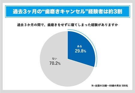 ※本調査では「過去3ヶ月の間で、歯磨きをせずに寝てしまった経験がある」人の割合を「歯磨きキャンセル率』と定義しています。