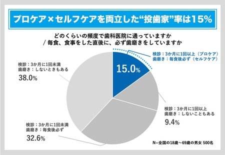 投歯家率(正しく口腔ケアに取り組めている人の割合)はわずか15%