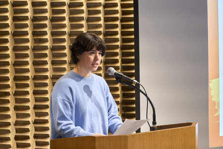 本アワードの開会にあたり、はじめに主催の経済産業省 福島芸術文化推進室・鎌形が挨拶。福島県浜通りにおける「映像芸術を通じて地域の誇りと交流を育み、関係人口を広げる」ことを目的として掲げ、2022年に始動した「福島浜通り映像・芸術文化プロジェクト」の歩みを紹介しました。東日本大震災から10年以上、浜通りはロボットや再生可能エネルギーといった新しい産業、アートが共鳴する“再生と創造の最前線”として復興を続けており、前進する現在の浜通りを映像として記録することが、10年後、20年後の文化継承に繋がることを提唱しました。