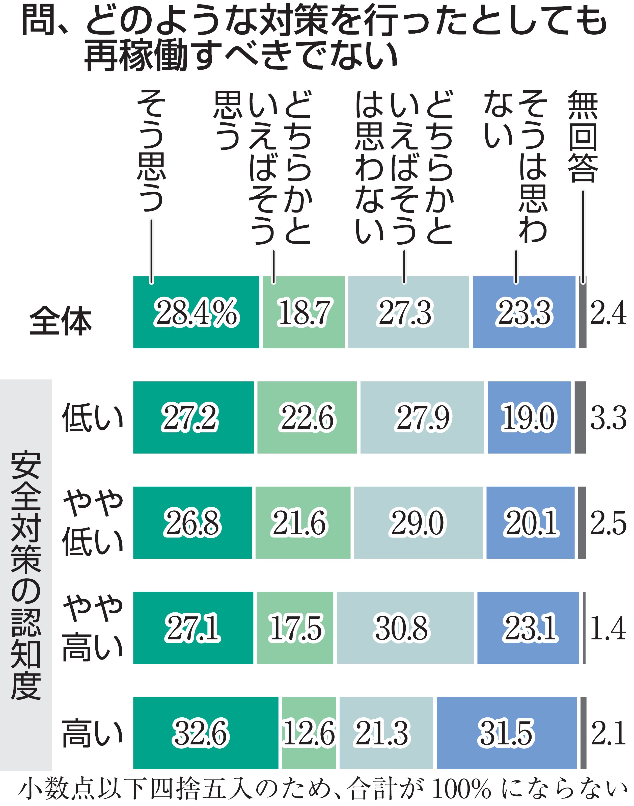 6日に公表された分析では、対策の認知度別に回答者を四つのグループに分けて再稼働への考えとの関係性を調べた。