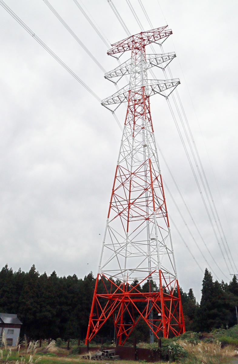 市中心部から南に車を走らせると、水沢地区で信濃川を渡る送電線が見えました。田んぼの真ん中に立つ鉄塔には小さく「東京電力」の文字も。柏崎刈羽原発と首都圏を結びます。