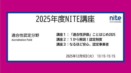 【NITE講座】【参加受付開始】適合性認定分野 無料セミナー(2025年12月9日(火)13:15~15:15(予定)) | 適合性認定 | 製品評価技術基盤機構