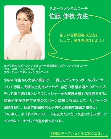 今回のテーマは、スポーツメンタルコーチ・佐藤伸枝先生による