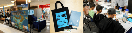 東京/成田-パラオ間の直行便の就航に合わせ、10月28、29日は成田空港内の第1ターミナル内に「パラオ・ブース」を設置。パラオの魅力や、手つかずの自然の素晴らしさを、ブースを訪れた人たちに伝えました。この特設ブースでは、パラオ政府観光局のInstagram公式アカウントをフォロー頂いた方に、その場でパラオ関連のノベルティグッズがプレゼントされました。パラオのロゴ入りペンやエコバック、ステッカーなどの限定グッズは、成田空港を訪れた観光客にも大好評でした。