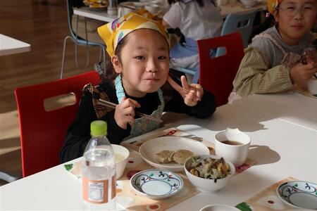 子どもたちは「国産の食べ物でスープも蒸しパンも簡単にできて楽しかった!」などと笑顔で話していました。参加した小学生の保護者からは「子どもでも作れる簡単なメニューで楽しい時間を過ごせた。子どもと家でも作ってみようと思います」と感想も寄せられました。