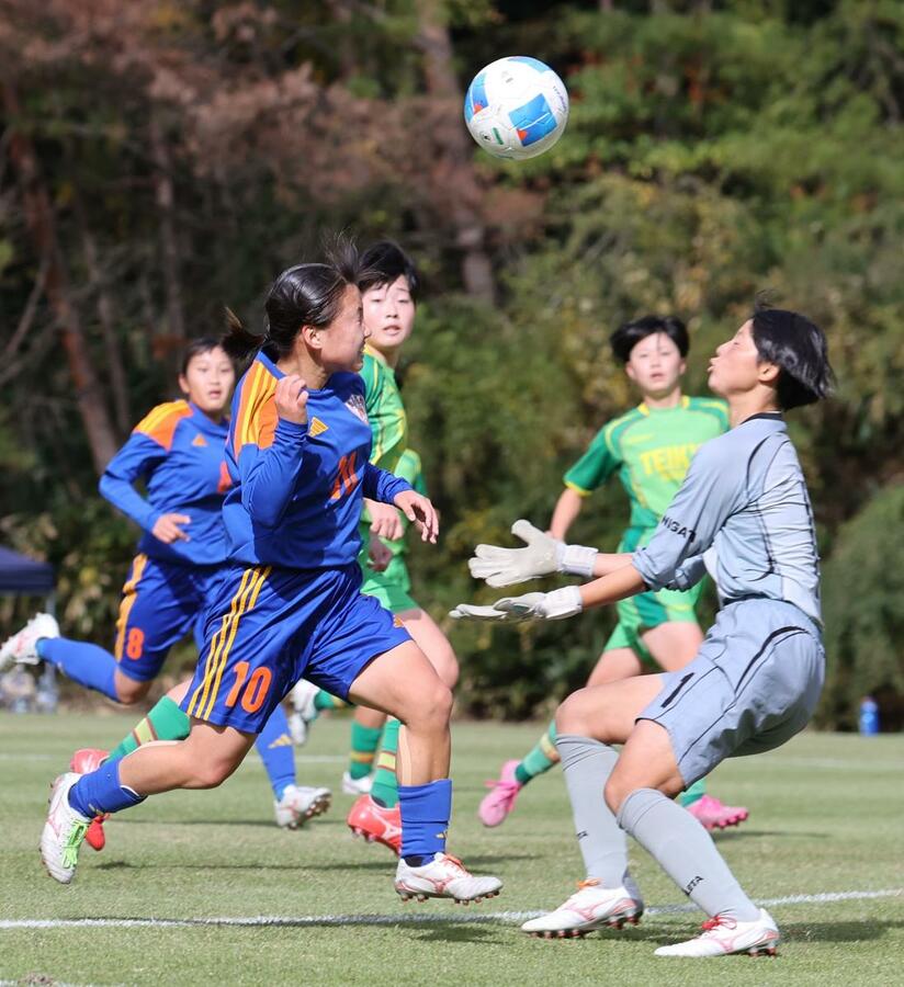 帝京長岡-開志学園JSC 前半27分、開志学園JSCのMF高山杏々葉が頭で合わせて先制=新発田市