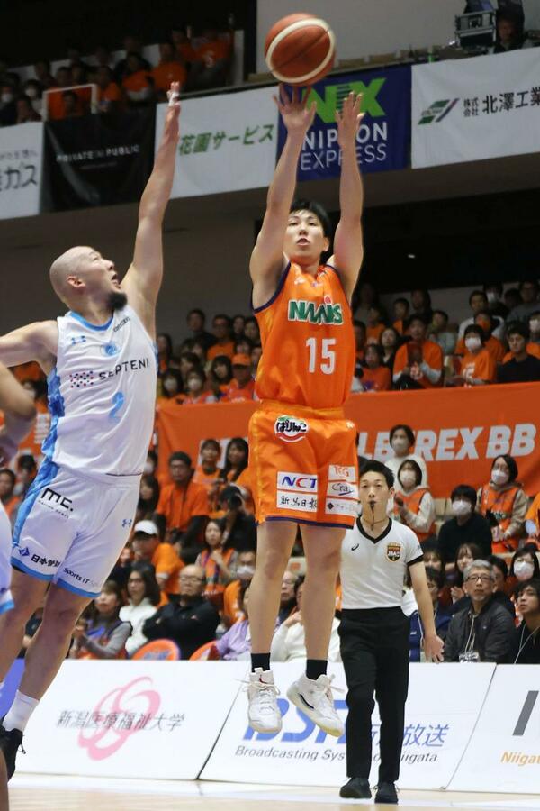 B3の新潟アルビレックスBBは第7節第2日の8日、アオーレ長岡で東京Uと戦い、80-98で敗れた。相手に3点シュートを19本決められた。連勝は3で止まり、通算成績は7勝6敗。順位は8位のまま。