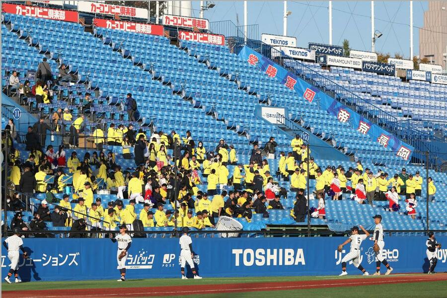 英明-帝京長岡 試合開始を待つ帝京長岡スタンド=明治神宮野球場