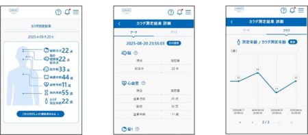6項目(脳、心血管、髪、筋骨格、肌、歯)48種類およびカラダ測定年齢