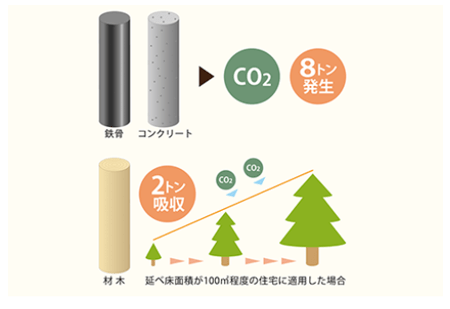 鋼管杭やコンクリート杭を使用する場合と比べて、戸建住宅1棟あたり約10トンのCO₂削減効果*⁴が期待できます。