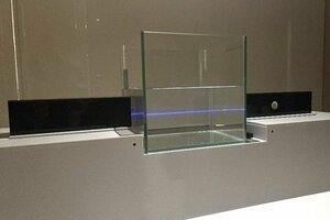 京セラの超高速水中光無線通信技術による水中光通信の様子