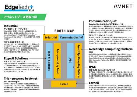 電子部品のグローバル・テクノロジー・ディストリビューターおよびソリューションプロバイダーであるアヴネット株式会 社(日本法人本社:東京都渋谷区、代表取締役社長 茂木康元)は、2025 年 11 月 19 日~21 日にパシフィコ横浜で開催される日本最大級の組込み・エッジテクノロジー総合展示会「EdgeTech+2025」に出 展いたします(ブース番号:展示ホール A CA-18)。期間中はアヴネットブースにて革新的な製品の展示に 加え、スポンサーとしてAMD のエンジニアによる最新製品に関するセミナーも開催します。