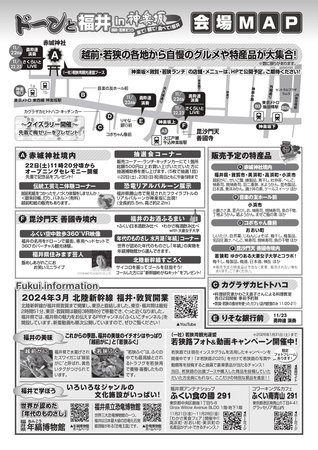 赤城神社や毘沙門天善國寺境内では、名田庄太鼓保存会「勇粋連」(おおい町 )や、福井伝統工芸アイドル「さくらいと」のステージを披露します。北陸新幹線の停車駅がマスになったすごろくや、越前和紙を使ったモノづくり体験コーナーも設けます。