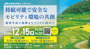 国際交通安全学会シンポジウム「持続可能で安全なモビリティ環境の共創~能登半島の復興まちづくりに向けて~」を12月15日(月)14時から 東京コンベンションホールで開催(参加費無料)