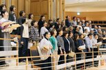 「昭和の川柳百人一句展」のPRのため新潟日報メディアシップを訪れた大野風柳さん=2016年、新潟市中央区