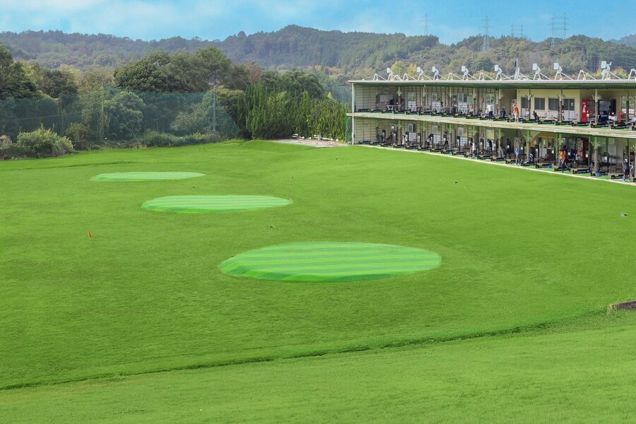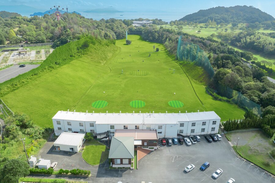 山口県の東端、和木町に位置するAG蜂ヶ峯は、隣接する岩国市内および大竹市内(広島県)から約20分でアクセス可能なゴルフ練習場です。県内最大級を誇る300ヤードのフィールドは、全面天然芝のフェアウェイを有し、フラットで横幅も広く、ドライバーからアプローチまで本コースをイメージした練習がお楽しみいただけます。また、本年4月にクラブハウスのリニューアルを行った当社運営の「和木ゴルフ倶楽部」と隣接しており、両施設の打席が向かい合うユニークな作りになっています。