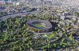 2001年、赤い横綱を締め還暦土俵入りの練習をする元横綱の北の富士さん(中央)。左は九重親方(元横綱千代の富士)、右は八角親方(元横綱北勝海)=東京都墨田区の八角部屋