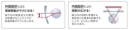 ・慣れやすい:遠近両用独特のユレ・ユガミに敏感な方でも違和感が少ない。