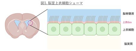 脳室上衣細胞の頂端面を覆うGcxは、糖鎖に富む構造であり、脳脊髄液(CSF)の循環や脳内老廃物の排出、脳内恒常性の維持に関与すると考えられています。脳の老廃物排出システムは、アルツハイマー病や睡眠関連疾患との関連で近年注目されていますが、その詳細な構造や加齢・脳損傷による変化は十分に理解されていません。