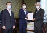 参院選の合同選対本部会議後、報道陣の取材に答える右から森裕子参院議員、菊田真紀子衆院議員、連合新潟の牧野茂夫会長=新潟市中央区