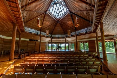 標高1,500m、高原の山々に馴染む美しい六角形と暖かい木のぬくもりが特徴の八ヶ岳高原音楽堂。「世界でも通用するような建物を」というピアニスト、スヴャトスラフ・リヒテルの助言のもと、1988年(昭和63年)に誕生。自然と環境に調和した美しい建築として「’89年毎日芸術賞」「’89年東京クリエイション大賞環境賞」を受賞しています。音響面では主に室内楽の演奏を想定し、理論に基づく実験と人の耳による確認を繰り返してついに小ホールとして理想的な残響1.6秒を得ました。木のホールならではの耳に心地よい柔らかで自然な響き、音楽のすべての魅力を届ける音楽施設です。