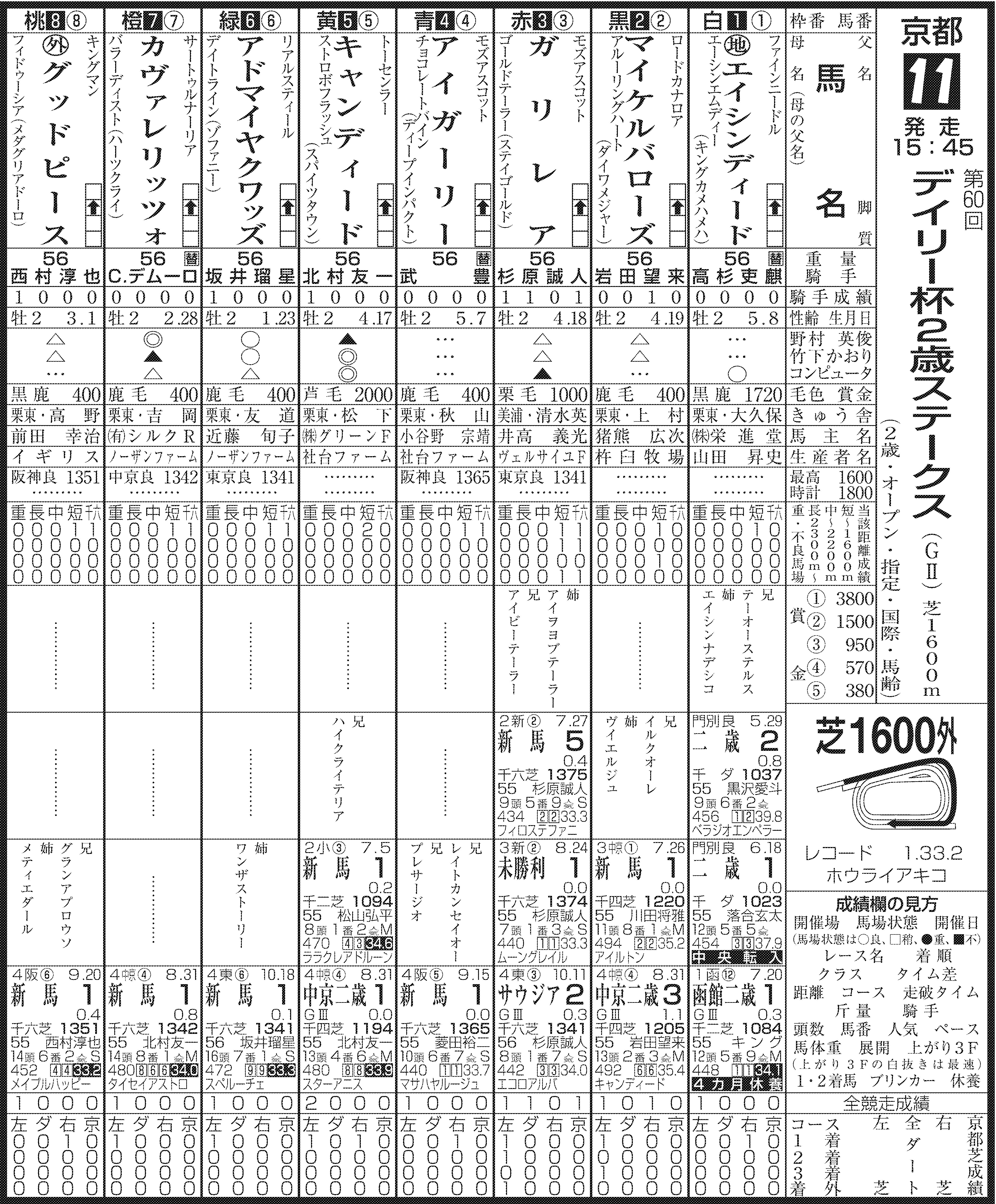 第60回デイリー杯2歳ステークス(15日・京都11R1600m芝8頭、GⅡ)