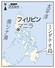 地図でフィリピン・ミンダナオ島の位置を示す元兵士の坂上多計二さん=鹿児島県姶良市