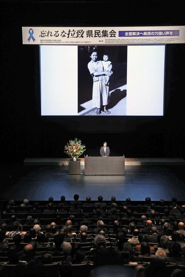 新潟日報社と新潟県、新潟市が主催し、市民ら約700人が参加。佐渡市の拉致被害者、曽我ひとみさん(66)や被害者家族、政府からは拉致問題担当相を務める木原稔官房長官が出席した。
