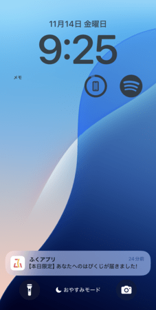 「プッシュ通知ではぴくじ」キャンペーンは、ふくアプリの機能である「はぴくじ」を使ったキャンペーンです。ご利用のスマートフォンとふくアプリのプッシュ通知設定をオンにするだけで参加対象となります。