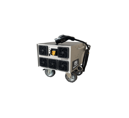 電知が提供するサービスは、持ち運び可能な機器(下イメージ図)を用いることで短時間・非破壊のバッテリー診断を可能にし、リサイクル現場や中古車販売店、整備工場など、場所を問わず迅速なバッテリー評価を実現します。診断には電気化学に基づく「電気化学インピーダンス法(注2)」を採用し、一般的なSOH測定(注3)では測定できない電池そのものの劣化度合いを直接計測します。これにより、バッテリーのリユース・リパーパス・リサイクルの正確な判断が可能となります。さらに、この診断機器を用いた放電処理サービスも提供しており、リサイクル現場における発火リスクの低減や安全な保管・輸送を支援します。