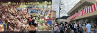 (右)地域の方々でにぎわった餅投げ行事の様子