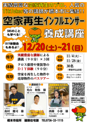 実績豊富な空家再生のプロ、人気のTikToker等の講師が橋本市に集結!!